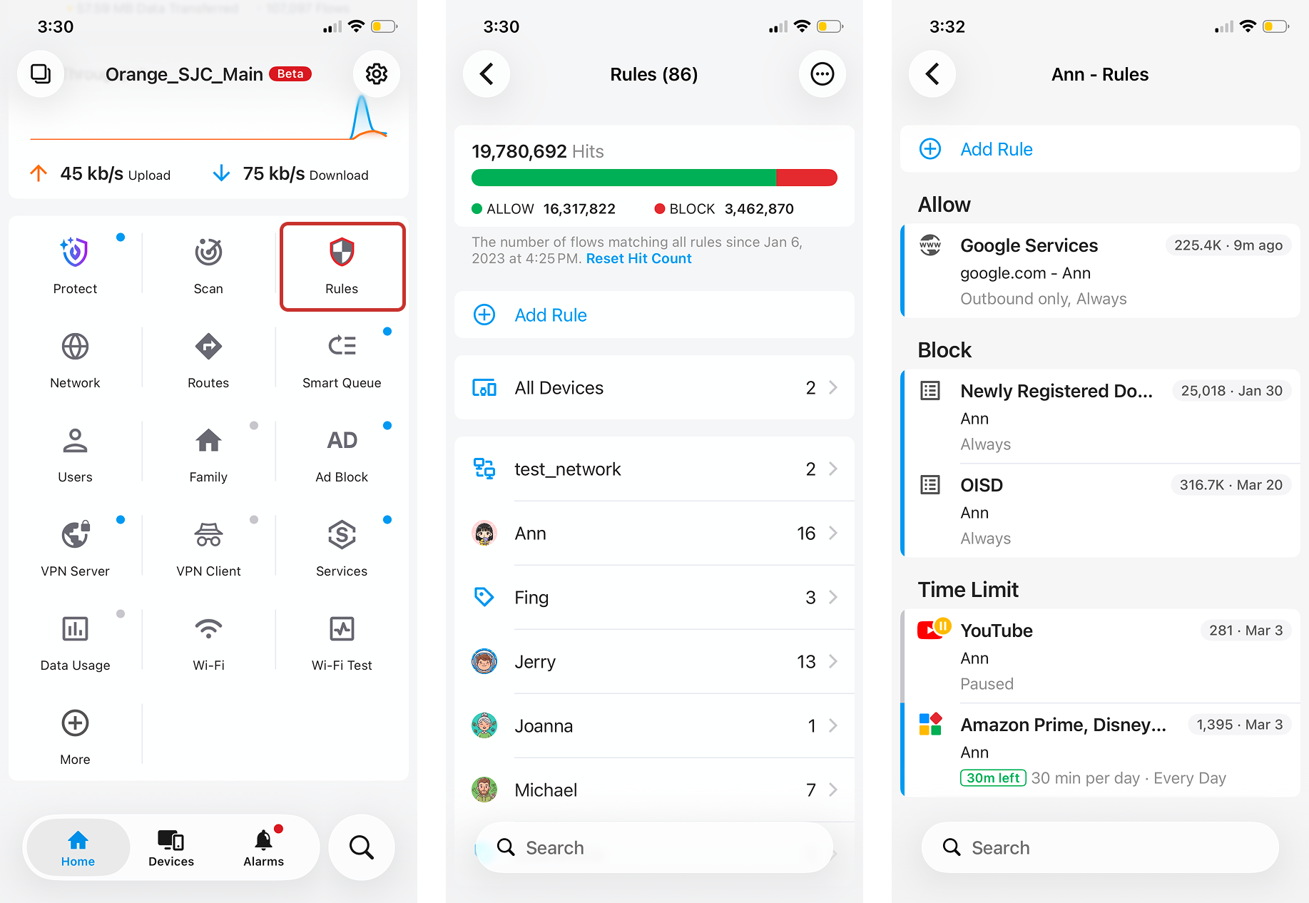 Firewalla Rules can be used to manage access control traffic on your network and devices. The targets for the rules can be Applications, Target Lists, Categories (gaming, adult, video), Network flows (IP, domain, port), regions, Internet, or Local Networks.