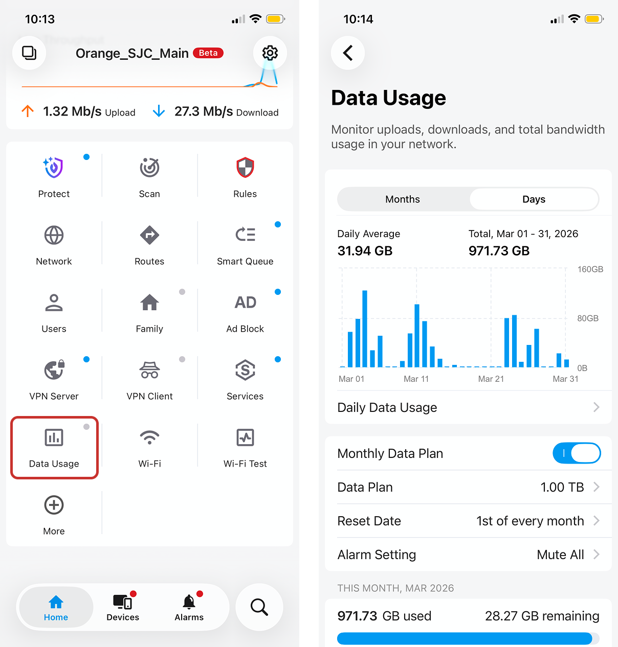 If your ISP has set a data cap for your network, Firewalla can help you keep track of your data usage and prevent unexpected overages. Simply tap on the Data Usage feature and enter your ISP's limit. Firewalla will notify you if you're coming close to your data cap.