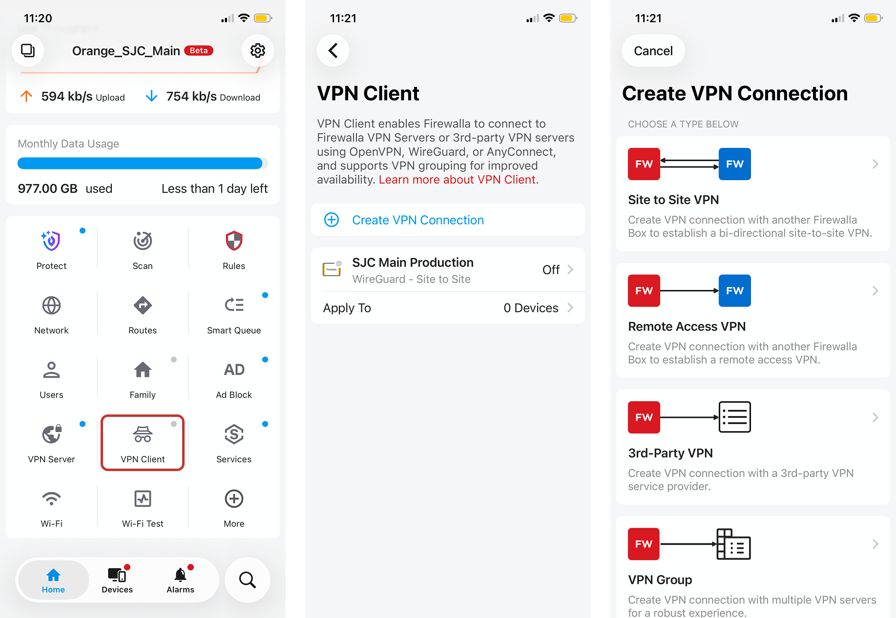 Additionally, Firewalla's VPN Client makes it easy to get your whole network on one VPN connection. Whether you want to connect to your Firewalla VPN Server or a different 3rd-party VPN service, our VPN Client can help you set up any VPN connection seamlessly.