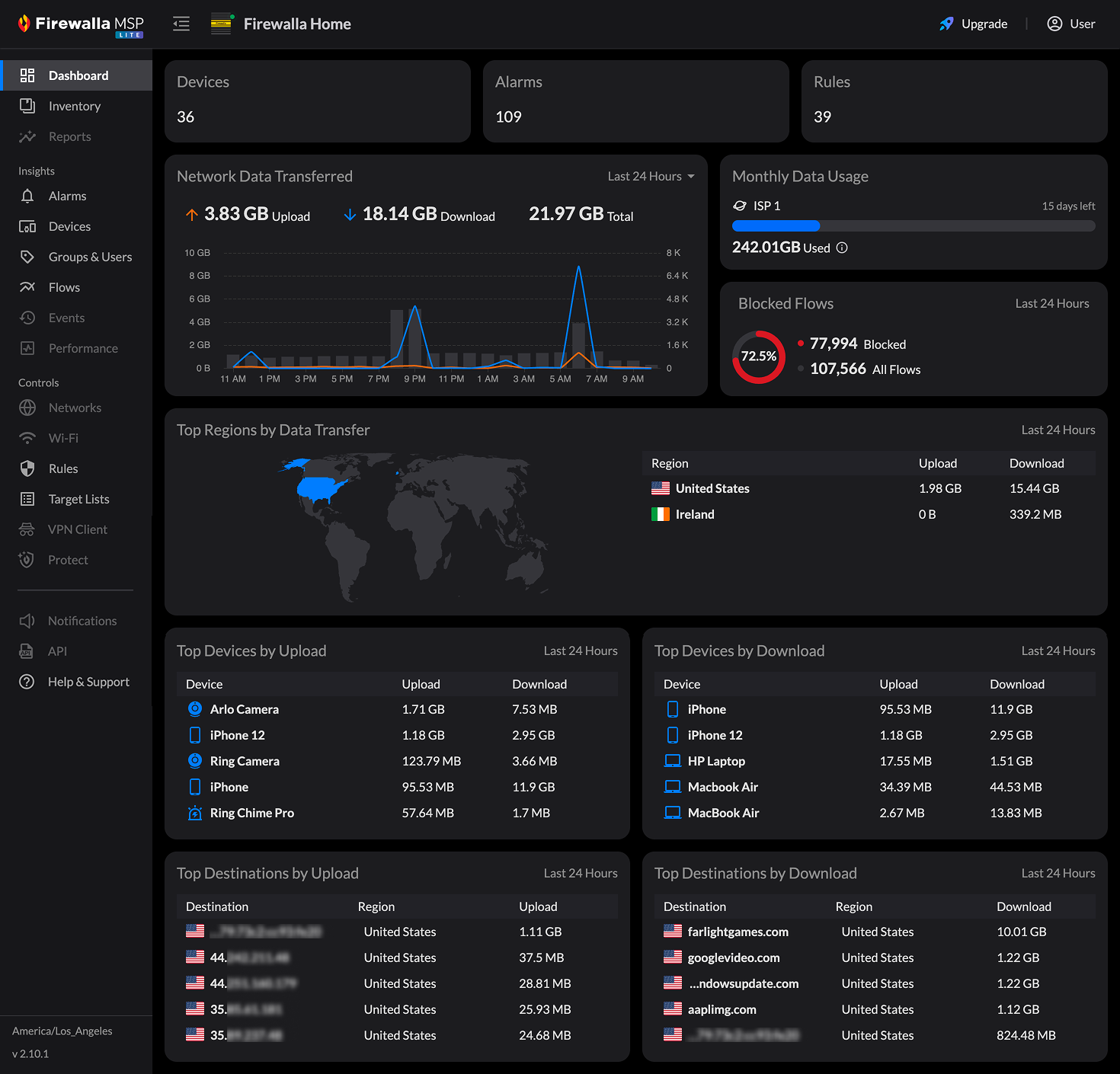 If you're an IT professional or a home user looking for a more heavy-duty web interface, try upgrading your MSP plan to Professional or Business. With a paid plan, Firewalla's Managed Security Portal (MSP) makes it easy to securely manage multiple Firewalla boxes from anywhere with features like: