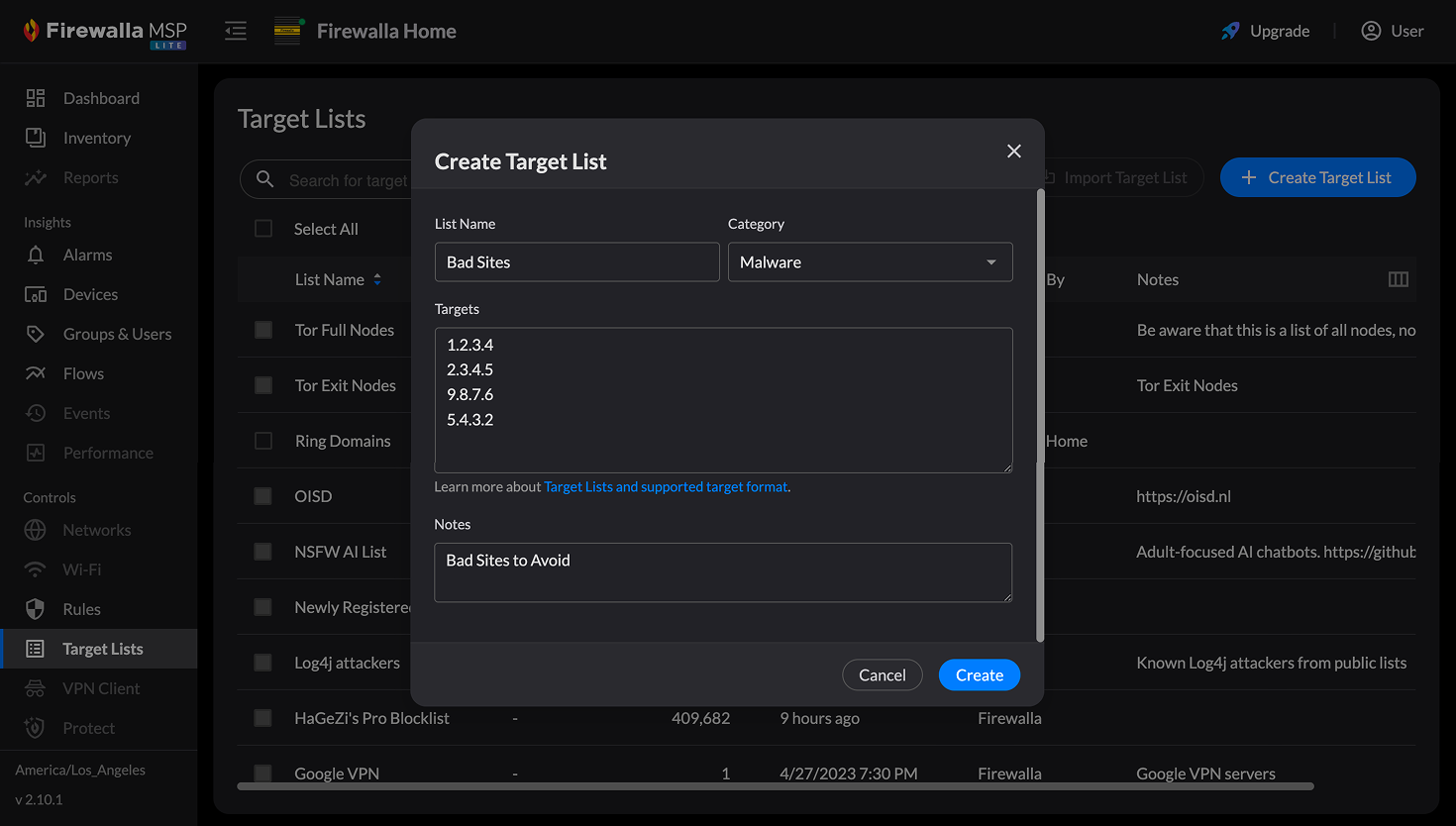 - Target Lists can only be created and managed using Firewalla MSP (including MSP Lite, Professional, and Business).