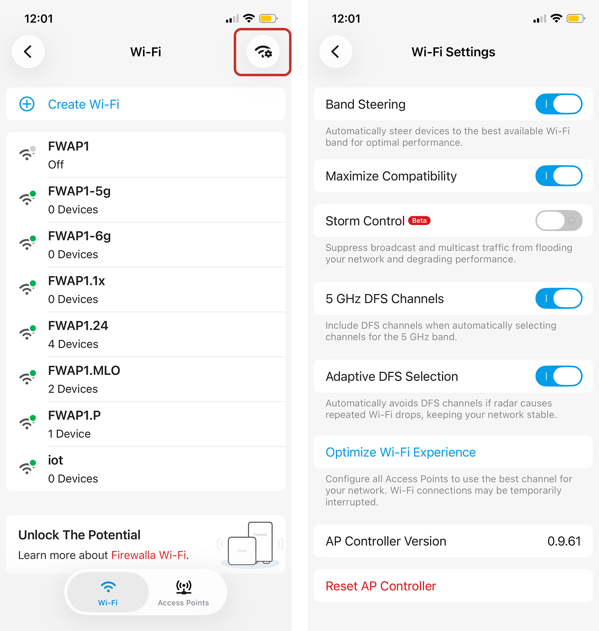 - Use Optimize Wi-Fi Experience from the Wi-Fi Settings page to update all AP7s to use the best settings for your network.