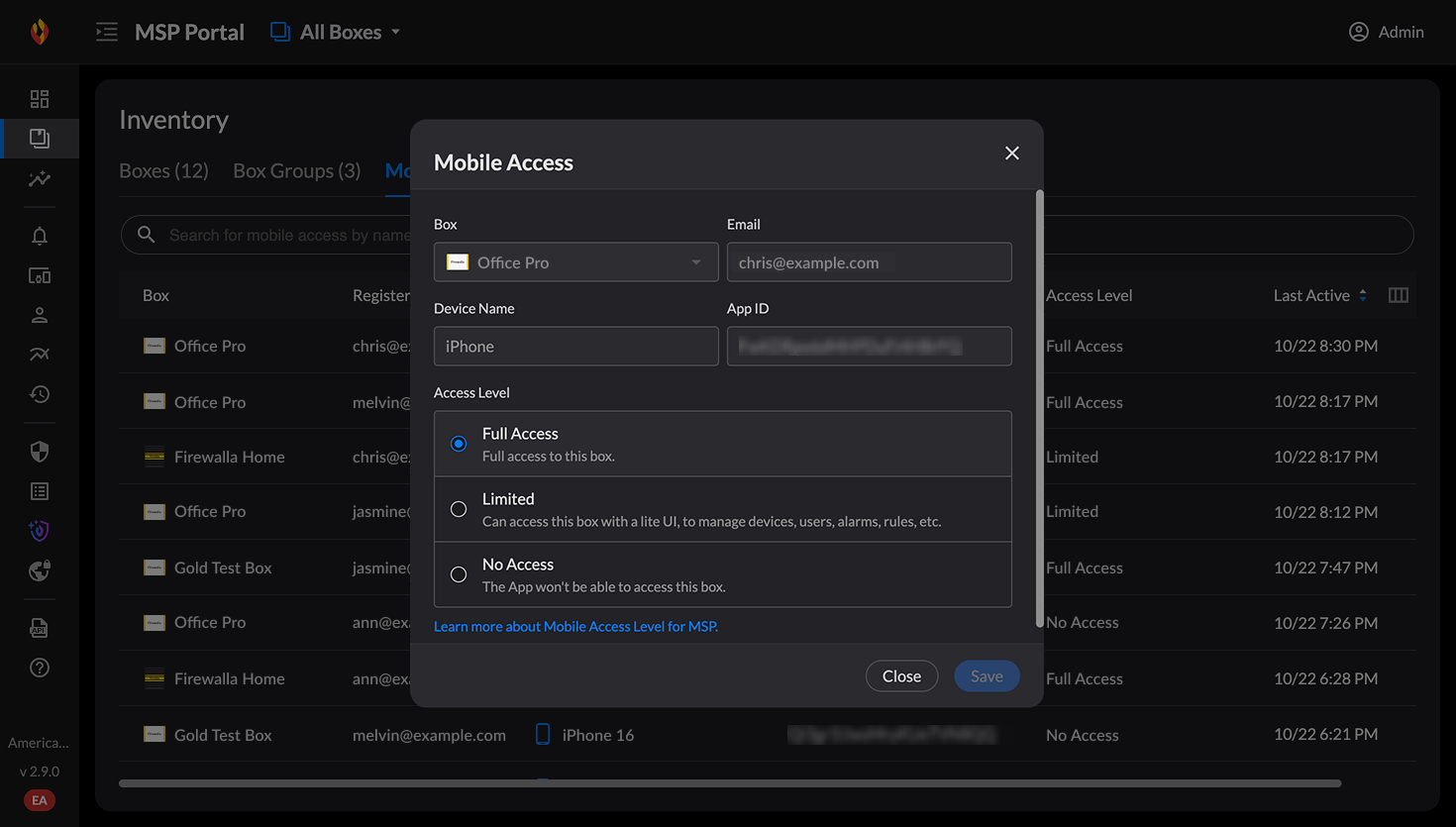 - If a box is removed from MSP, all paired devices will also revert to Full Access, even if the box is later re-added to the same MSP instance.