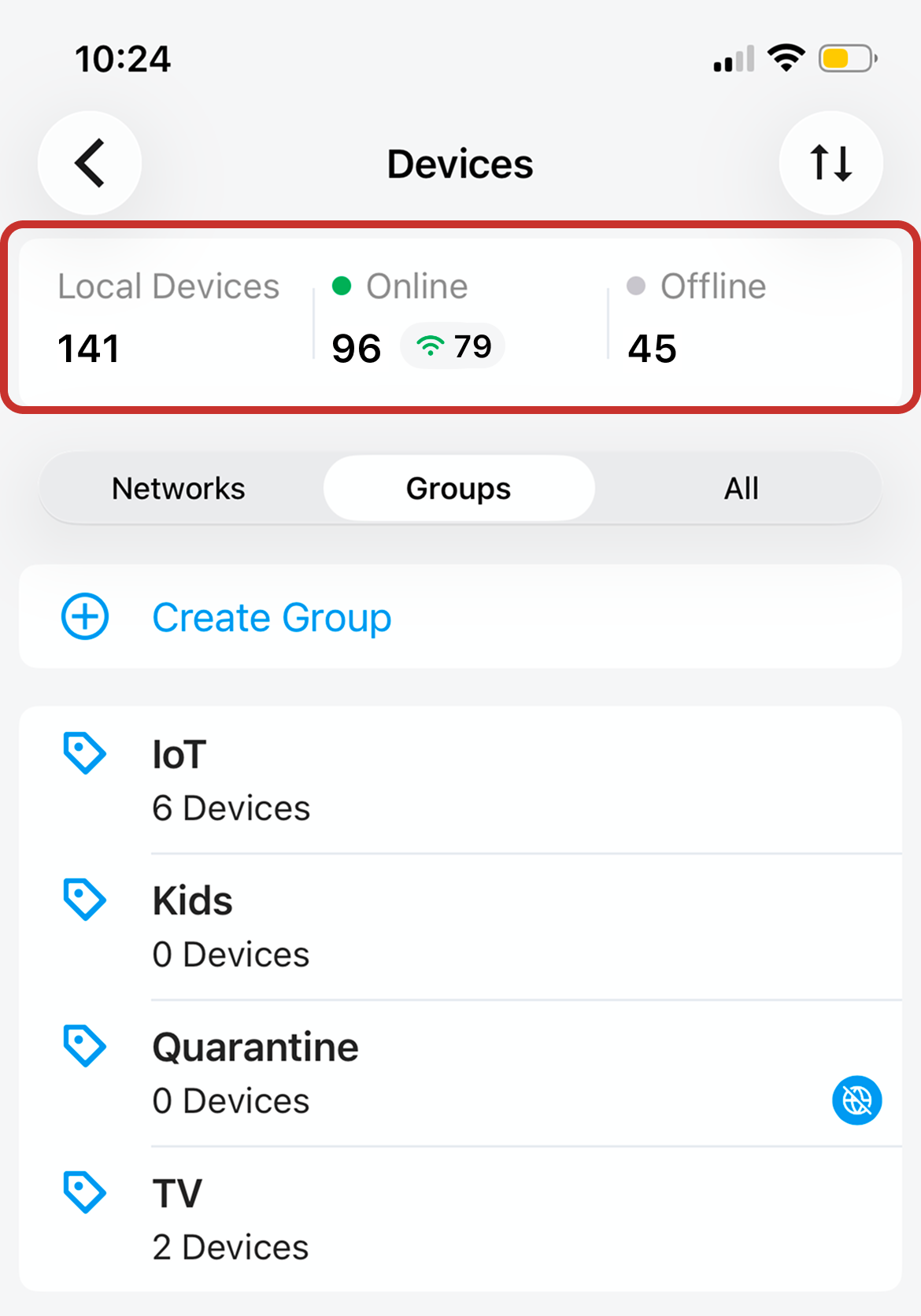 At the top of your Devices Page, a Device Summary will show the total number of local devices, online devices, and offline devices.