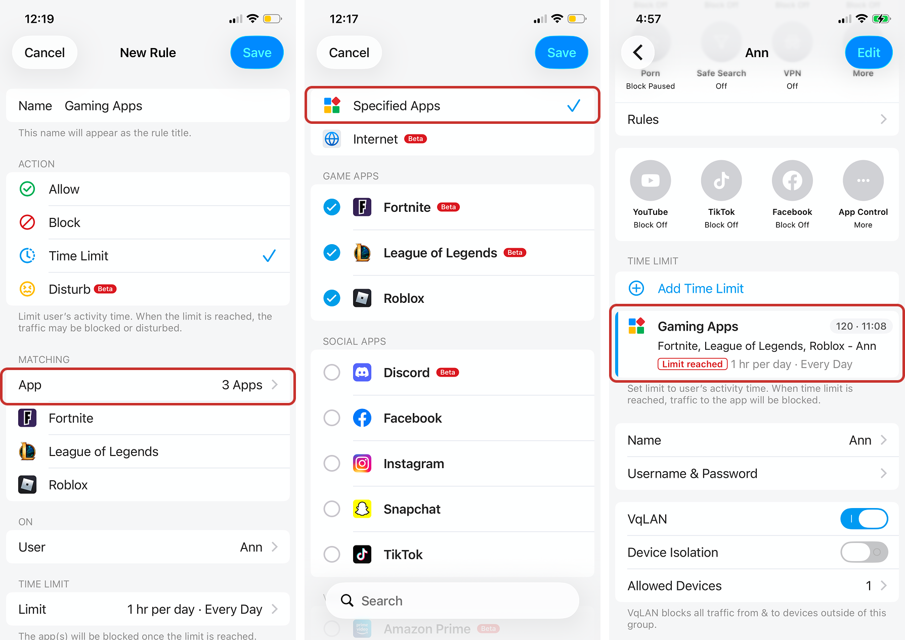 - Instead of setting separate time limits for each app individually, select multiple apps in a single rule. Any activity time on a specified app will count toward the total time of the Time Limit rule.