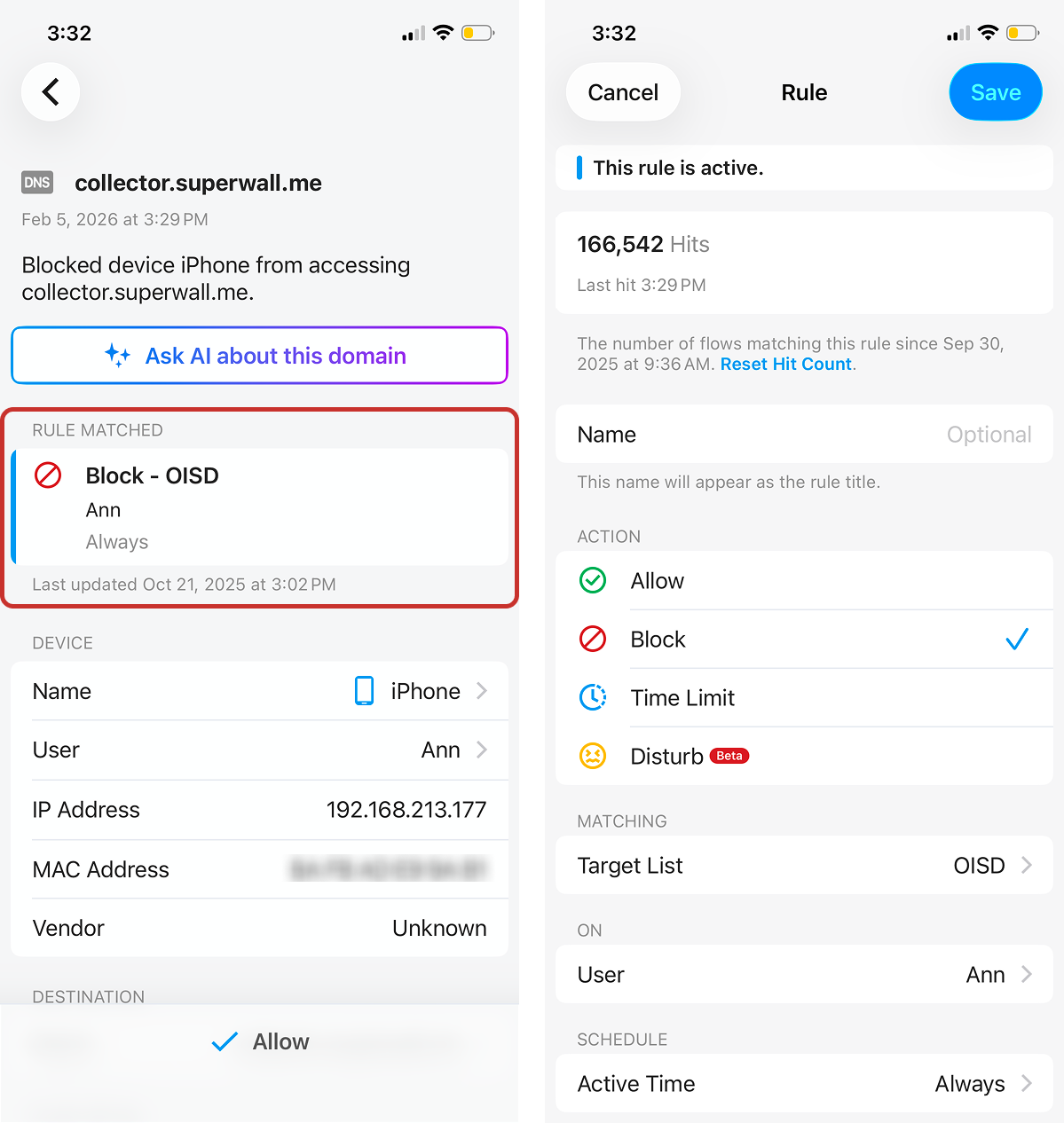 - Note: Rule Names may not appear in MSP 2.9. This will be improved in a future Firewalla MSP update.