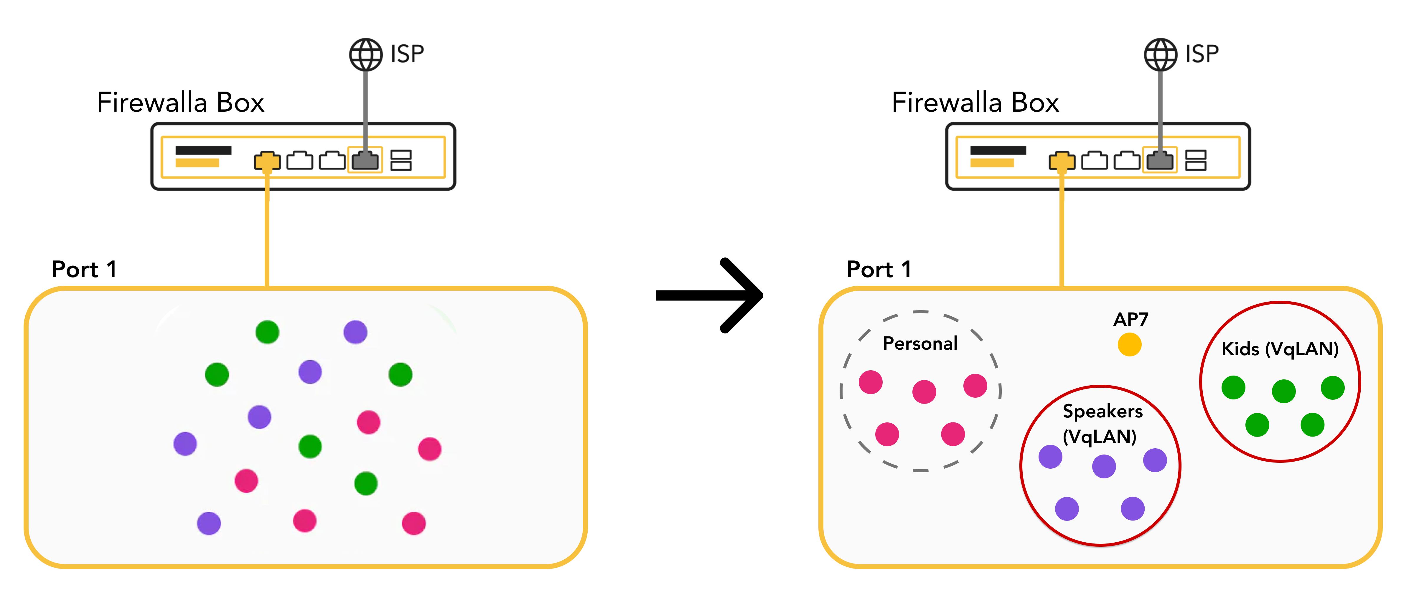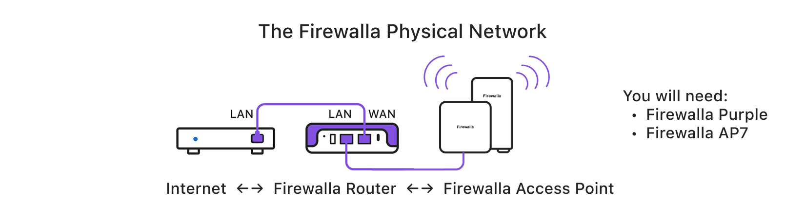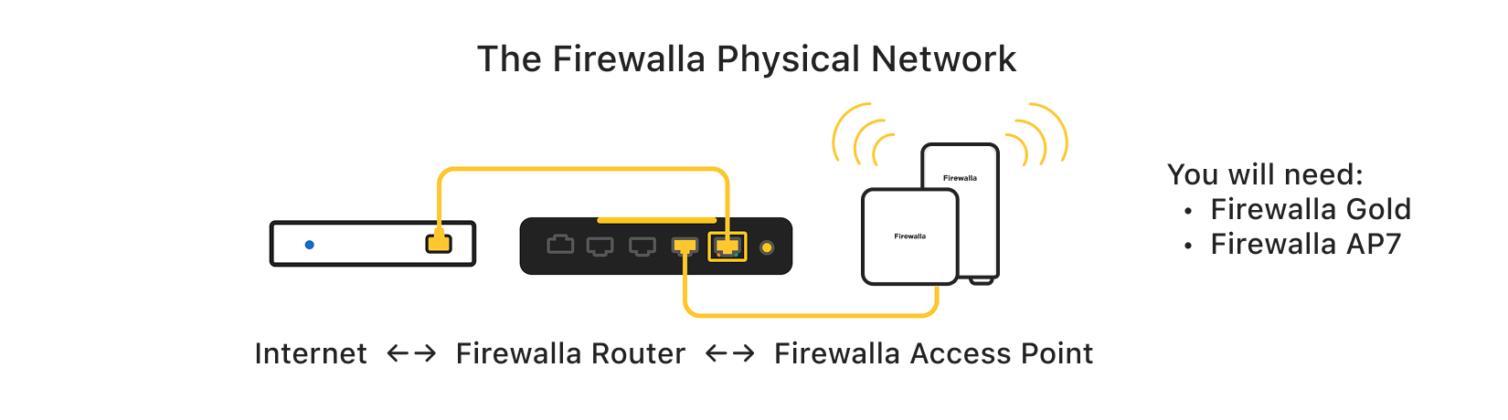To make management simple, we’ll use microsegmentation and keep everything on a single physical network. We’ll assume that all devices are connected via Wi-Fi to Firewalla AP7.