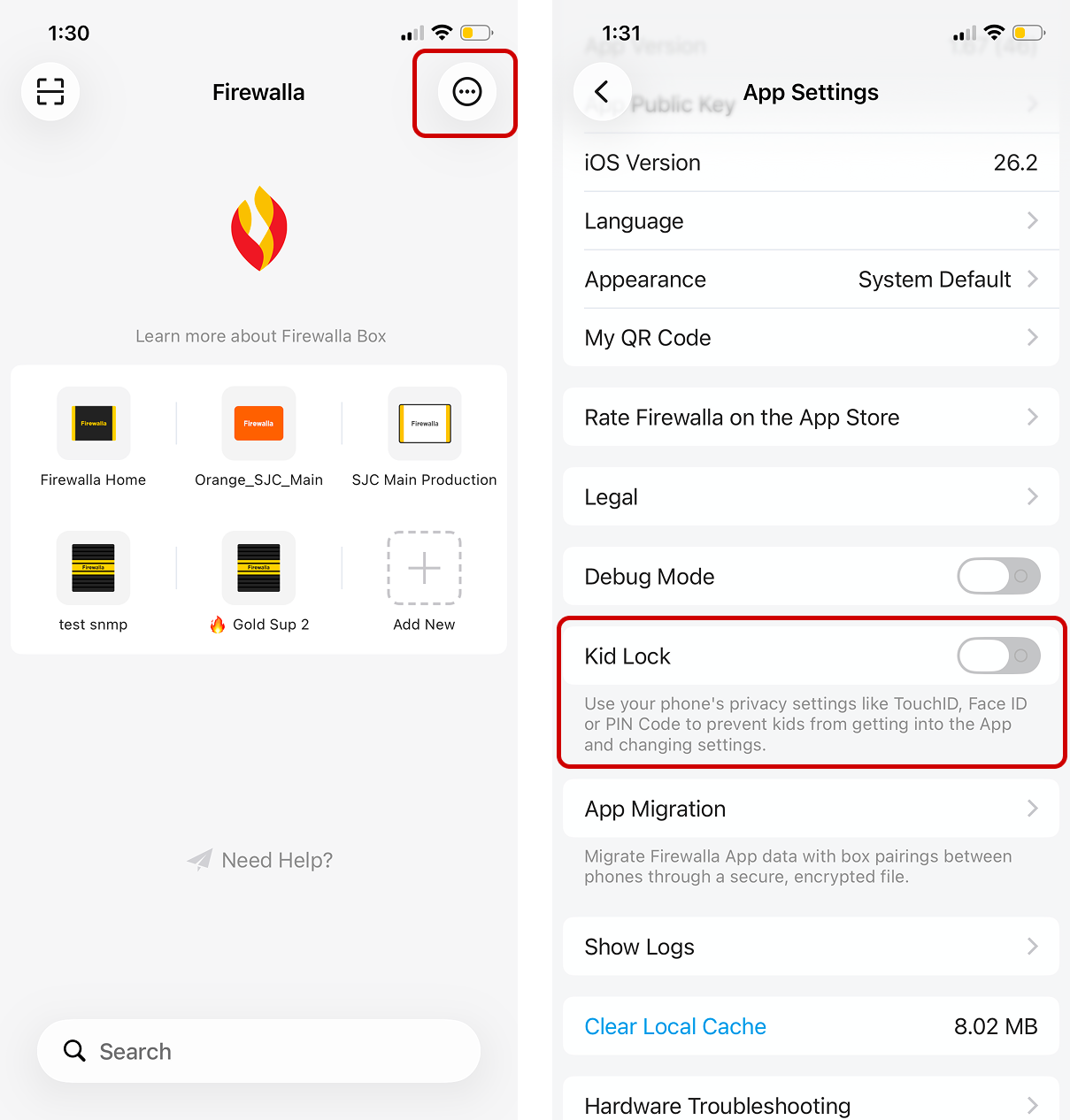 In case your kids gain access to your phone, prevent them from accessing the Firewalla App by enabling Kid Lock.