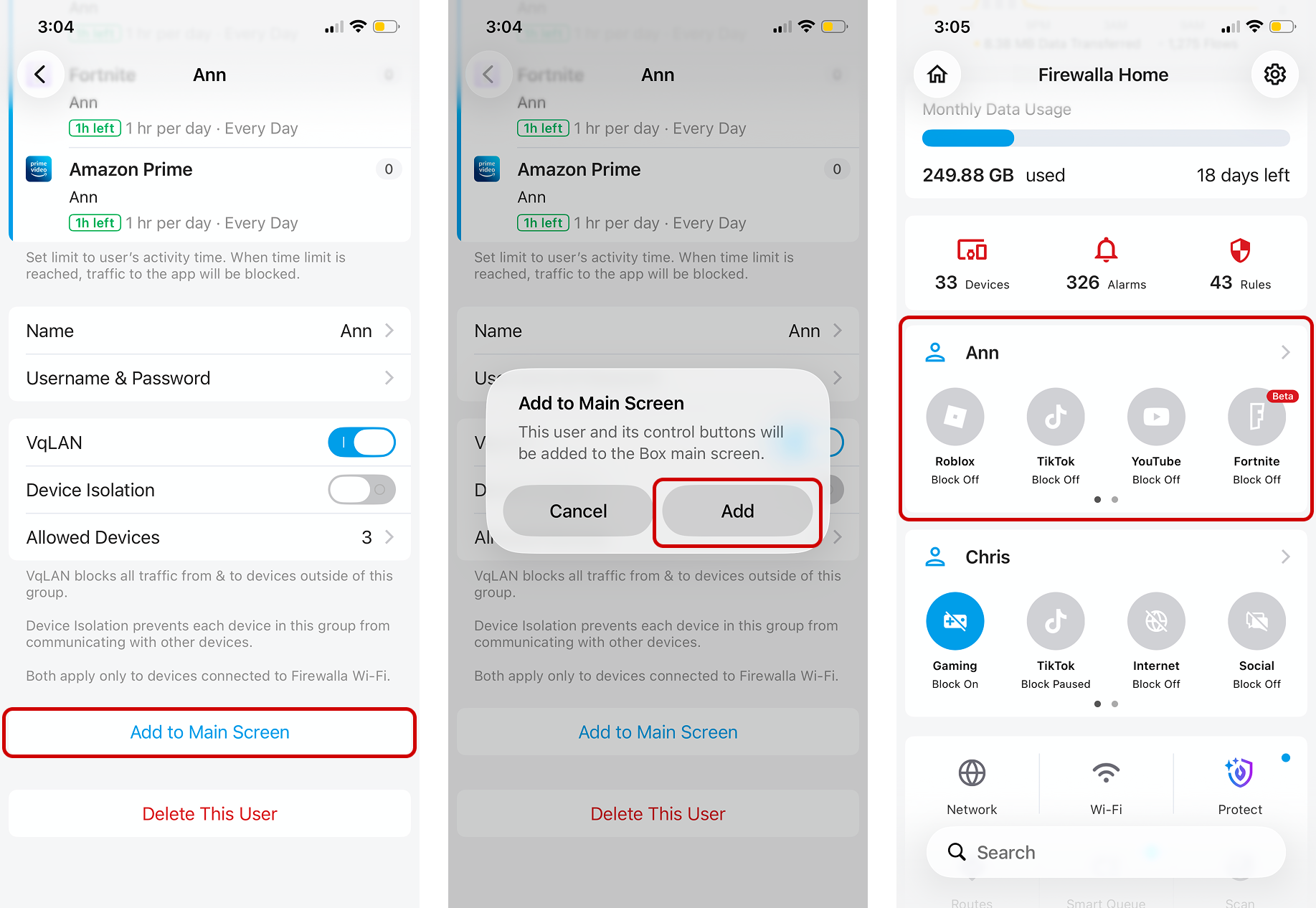 Add your kids’ Users to the main screen of the App using Main Screen Shortcuts.