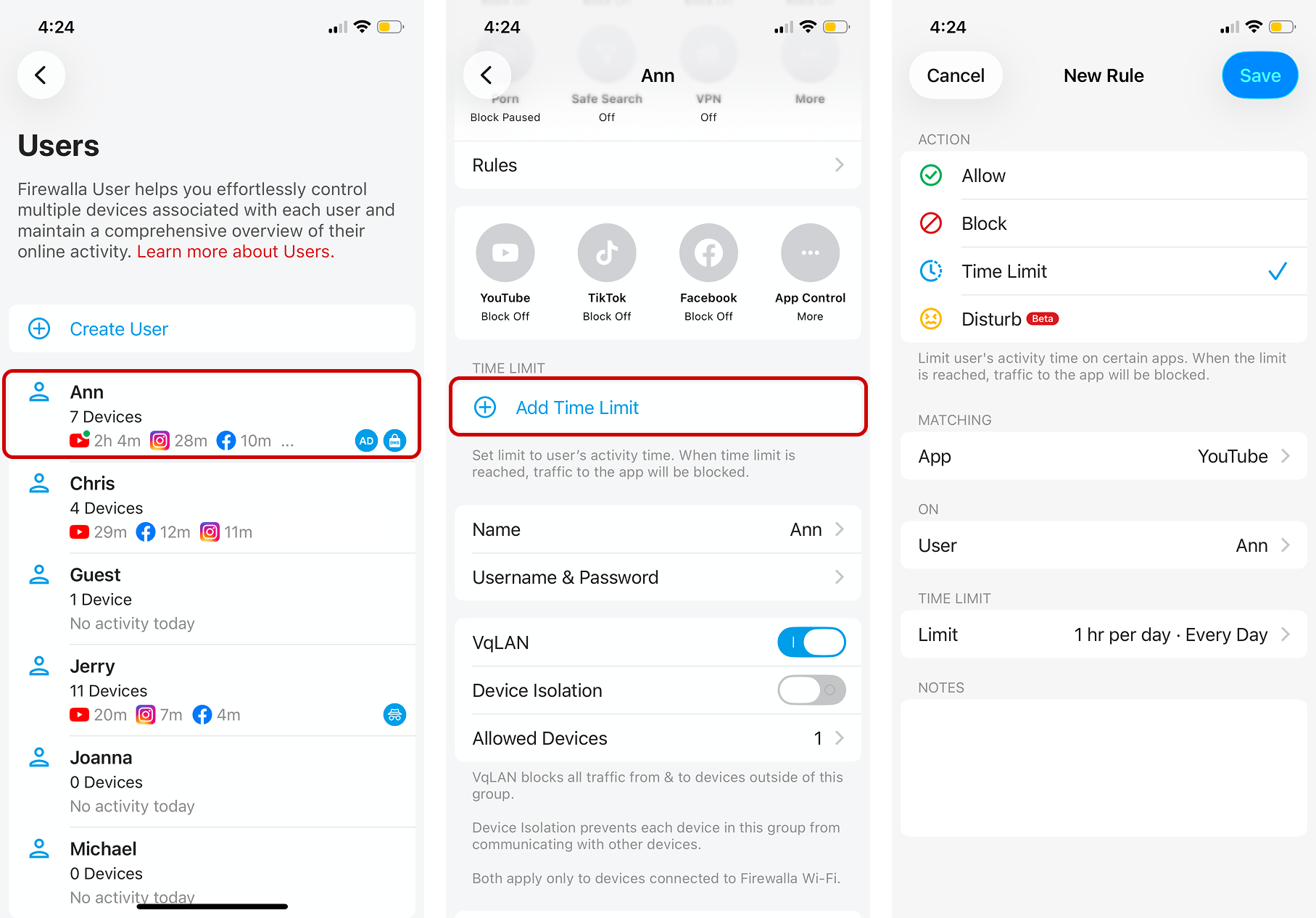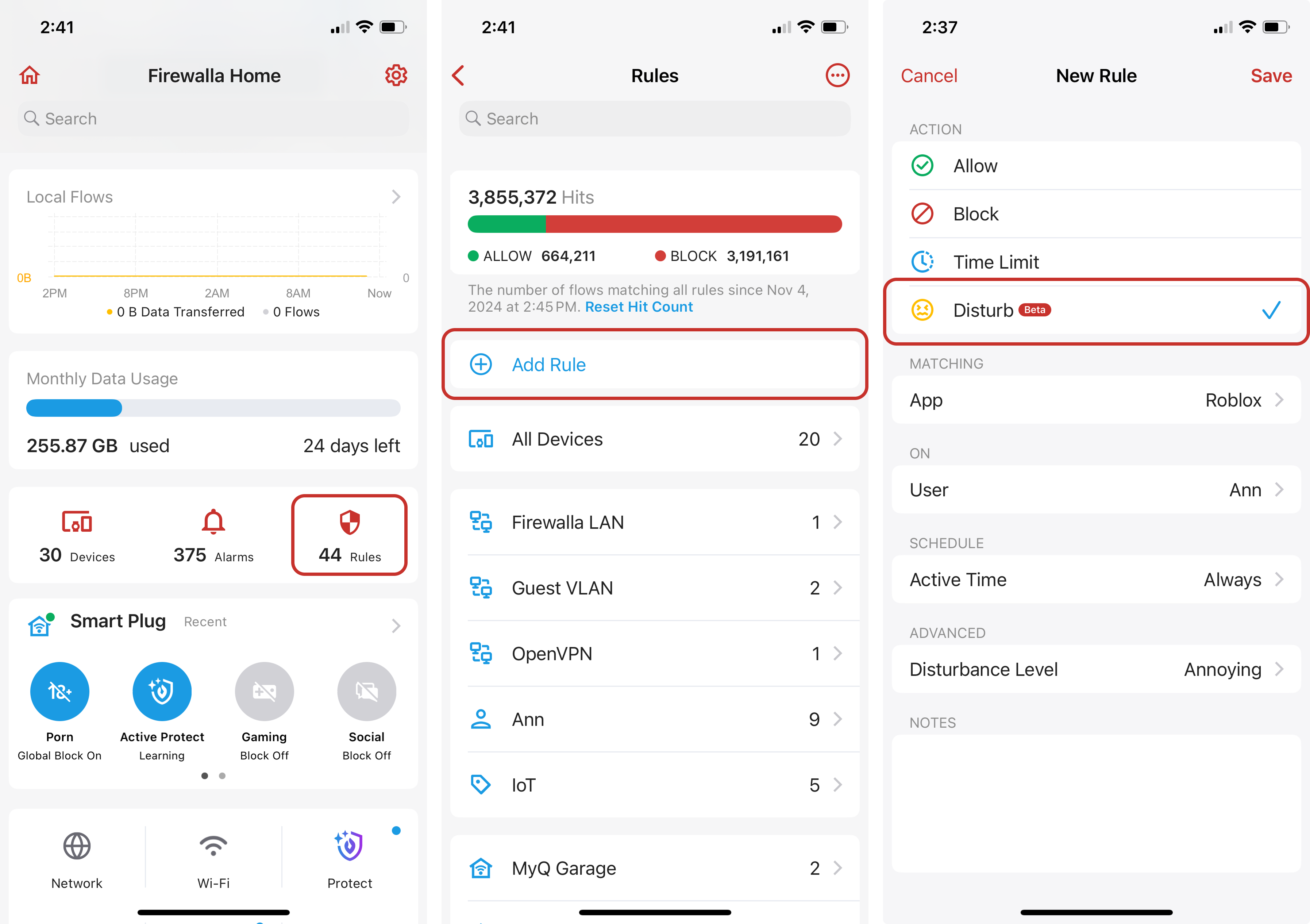 With a Firewalla Network, kid management becomes simple—no more rogue devices on your network, and no more kids accessing things they shouldn’t be. With Firewalla Parental Controls, you have full flexibility and control over when and how your kids use the internet, keeping your network safe and your mind at ease.