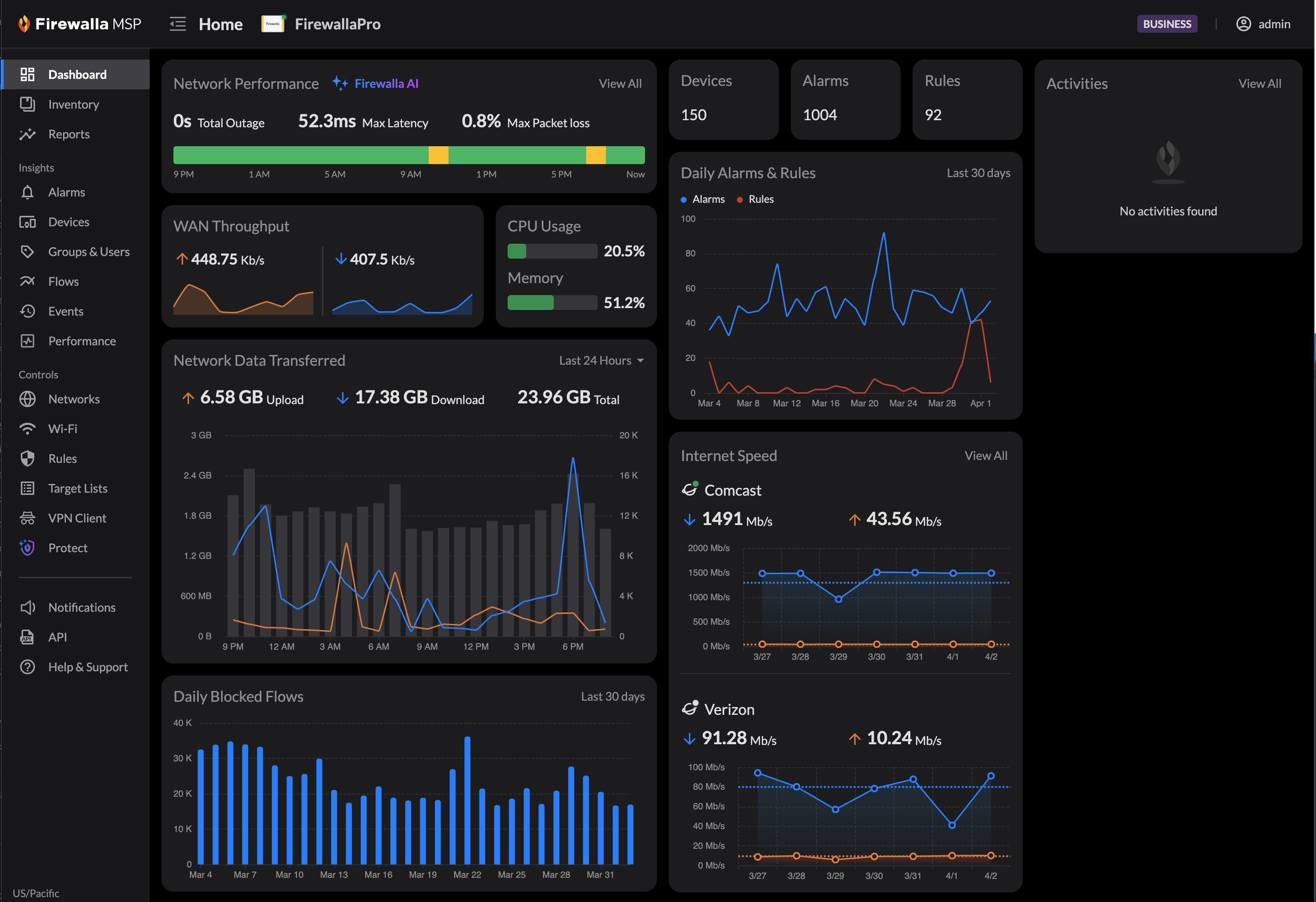 For single box MSP, three new widgets have landed on the MSP dashboard — WAN Throughput, CPU Usage, and Memory Usage. You can keep an eye on the box status right from your main view without digging around. Also, upload traffic is now shown in orange color to make it easier to tell apart from blocking at a glance.