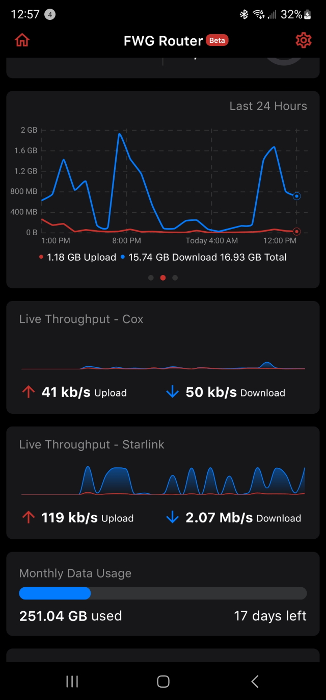 I've been using Multi-WAN fail-over with Cox cable as primary and Starlink as secondary. It's always shown data on the secondary fail-over WAN with a minimal amount of data flow. Recently (not sure when) I'm seeing as much if not more data usage on the secondary WAN (Starlink) and not sure why.