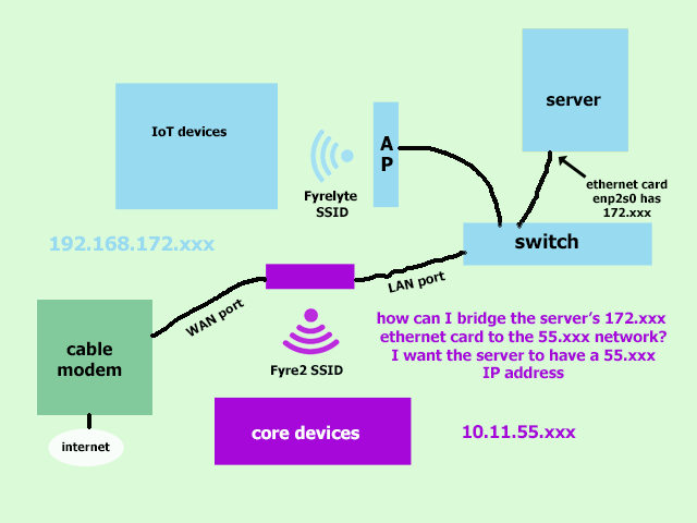 Is WiFi inside the purple? or your own AP? if your own AP, you need to change that to bridge mode.