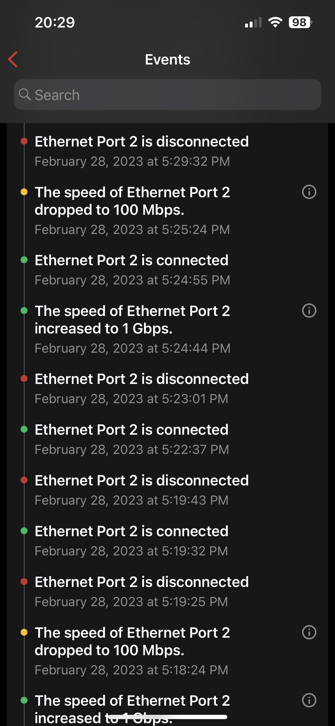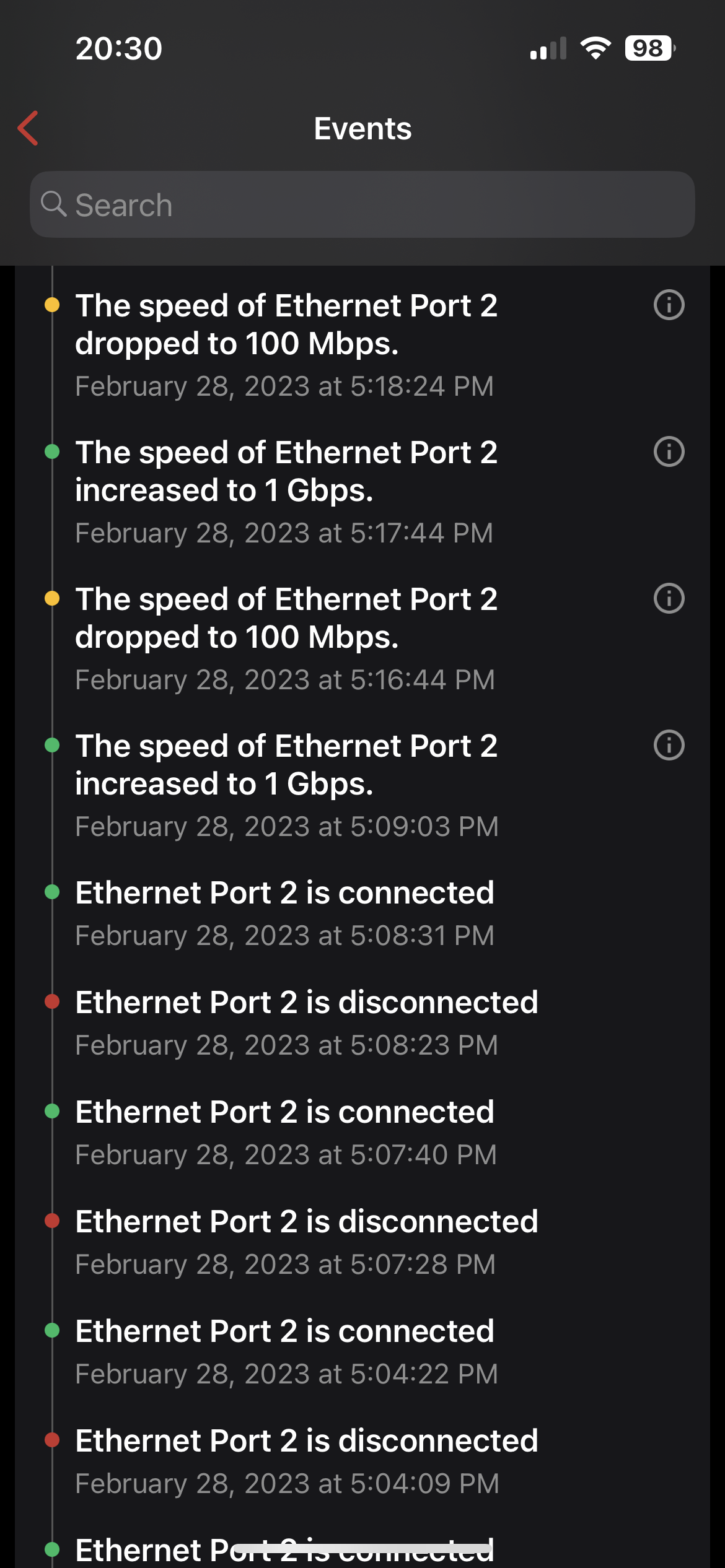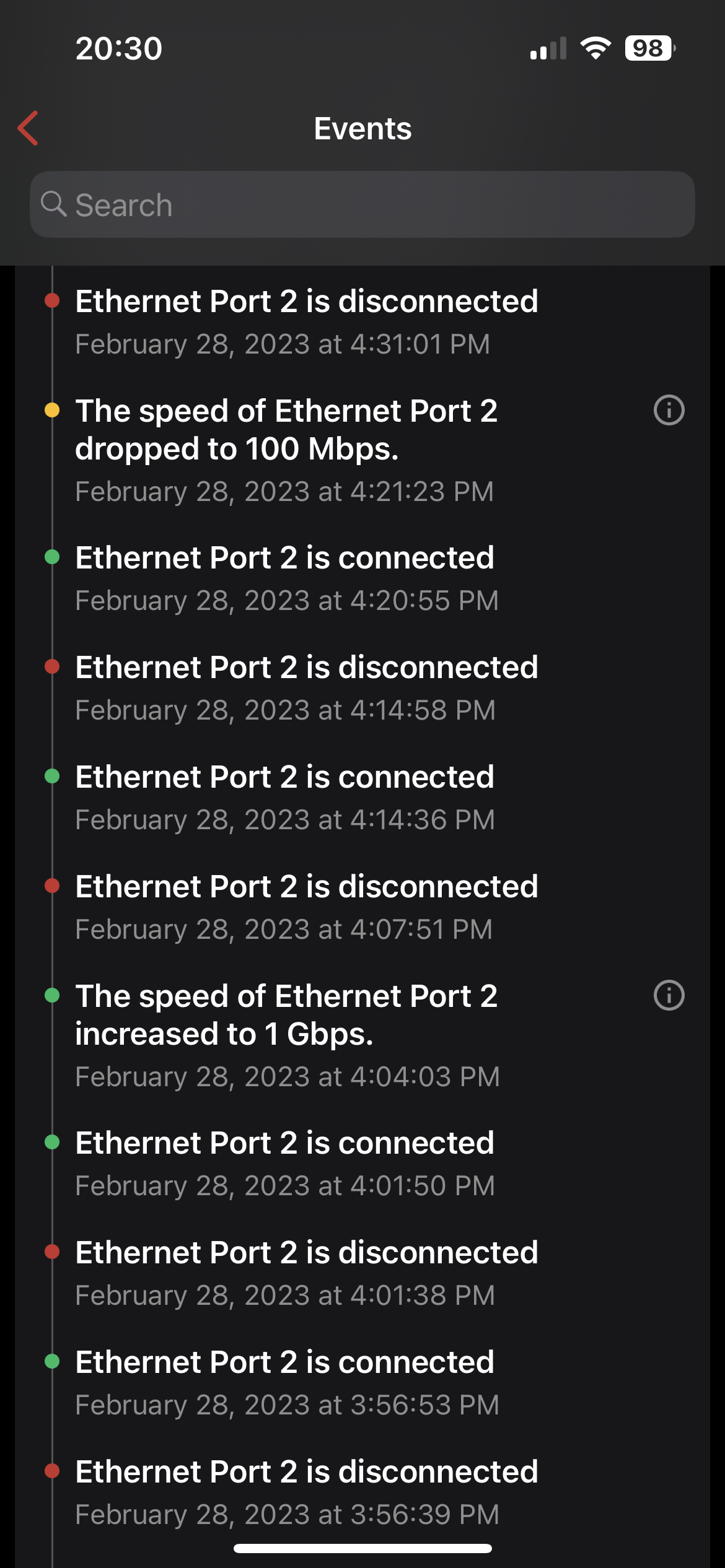 In recent releases, we have added more visibility in the app regarding to ethernet speed change, this may be helpful to detect the real speed downgrade, but it may also unexpectedly uncover some strange behaviors from devices. (again this only happens when device is directly connected to Gold)