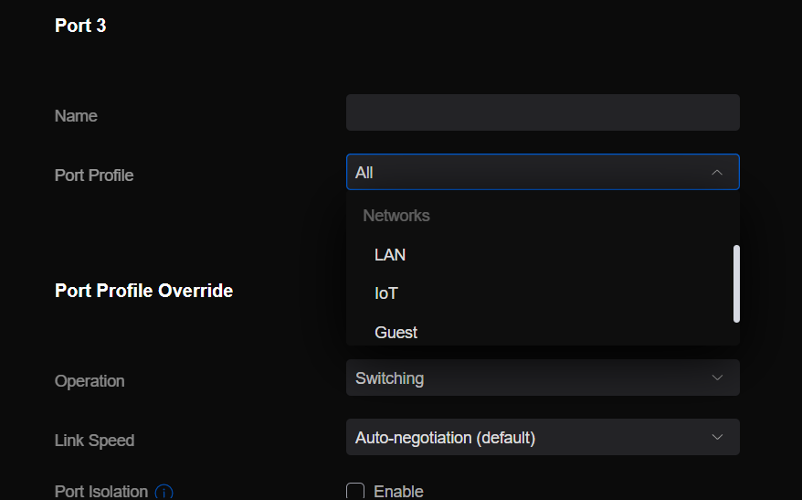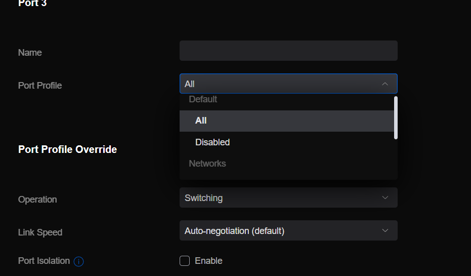 And in every prot you can set Port Profile which is also related to ALL - untagged on every VLAN/"network" or turned off or untagged on specified VLAN/"Network", like below: