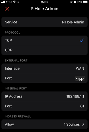 For some reason, we haven’t been able to figure out yet, the configuration test fails (bottom of the app Edit Instance screen) even though the Pi-hole can (obviously) accessed. We will leave that to someone else to sweat over (suspect it’s trying another, unforwarded / unNATted port).