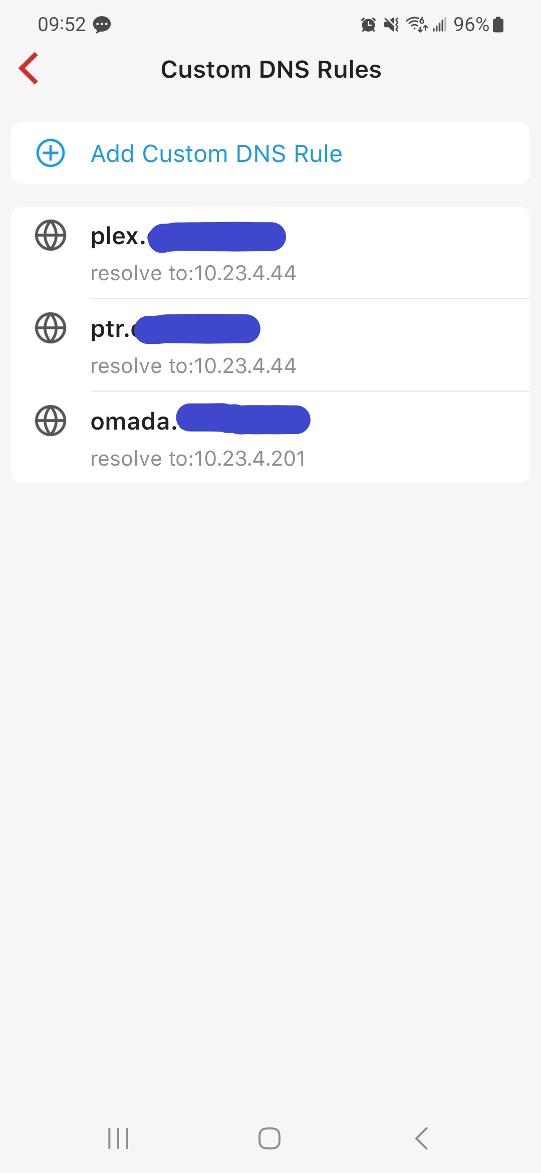 3) Some subdomains, such as omada.mydomain.com I would like only defined on the internal dns.