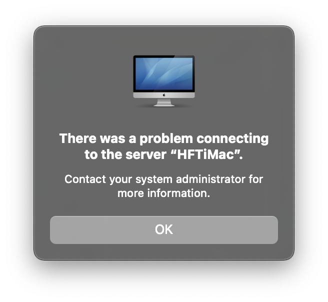 I've had my Gold for about 2 weeks or so, but I only today noticed that I can no longer connect over my LAN between my MacBookPro and my iMac using File Sharing. The MacBookPro "sees" the iMac as an available server in the Finder, but trying to "Connect As..." fails with this error: