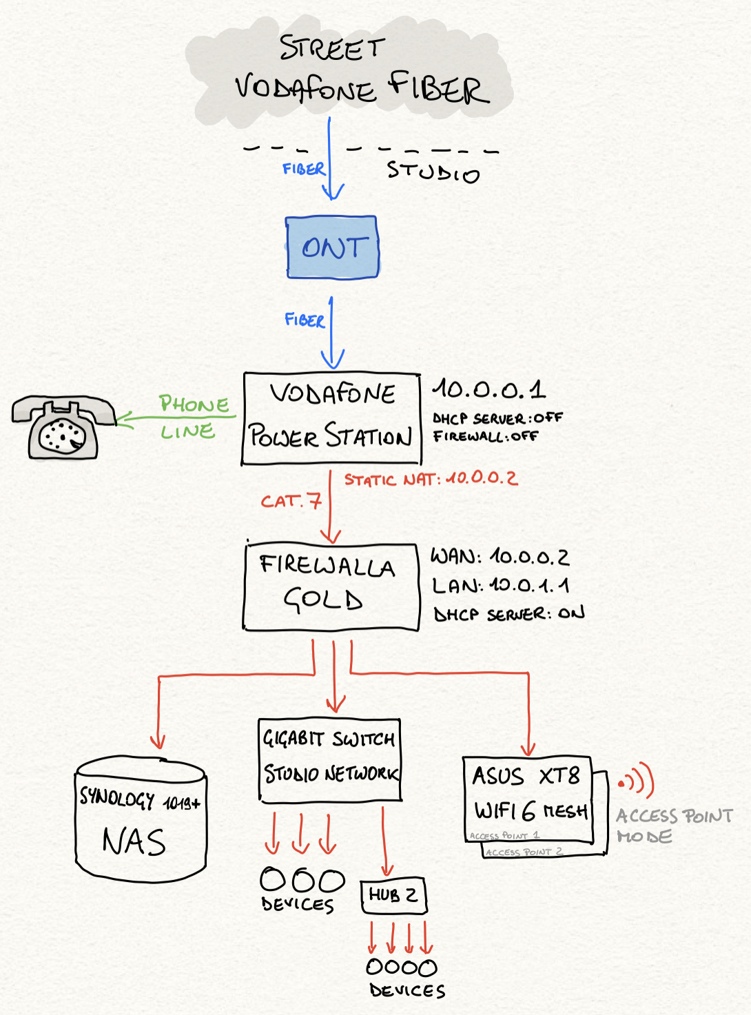 Maybe the VF Power Station can slow a bit the incoming traffic? It should be a simple static NAT, that passes everything to the Firewalla, but... I'm not a network expert... All of my main cables are CAT.7 (even if not strictly required).