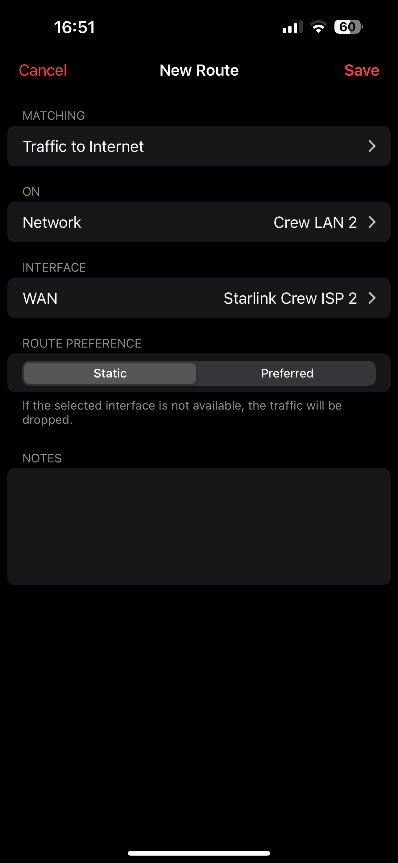 Routes can be applied to any device, Group/User, Network, or All Devices.