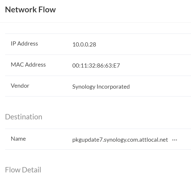 I'm seeing blocked flows where the outbound traffic -- apparently going to synology.com -- is being blocked. The URL synology.com itself is not blocked. The output URL is appended with attlocal.net for reasons I don't understand. I do have att internet but don't understand why this is being added. Adding a rule that allows *.attlocal.net doesn't seem to affect things. If someone can someone explain what is issue here and how to fix it I'd be thankful.