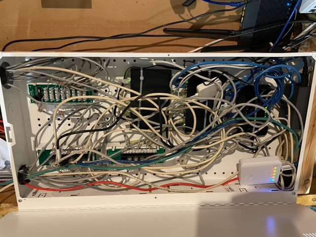 All battery backed up and terminated to this point either through wired connection to VLAN-enabled switches, or wireless PoE WiFi AP supporting VLANs. There are a couple of other controllers and a central back-up drive for desktop devices as well.