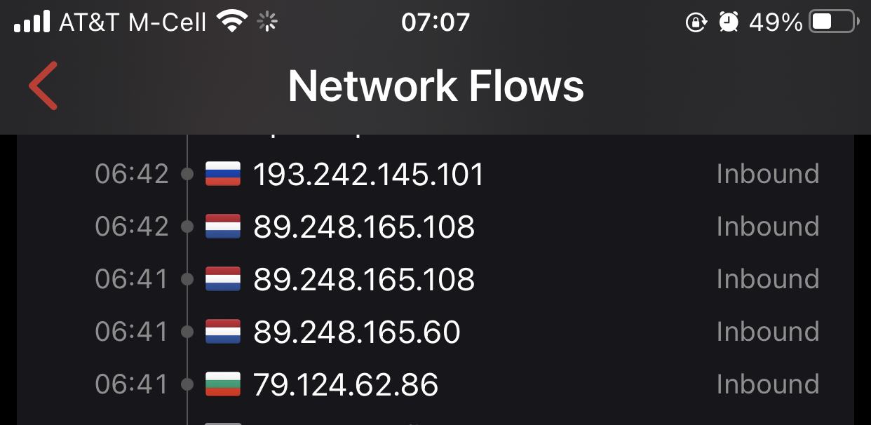 In the app, there isn’t any way just to show inbound blocks. Or a way to filer on, say, 45.155 to see if they are scanning us.