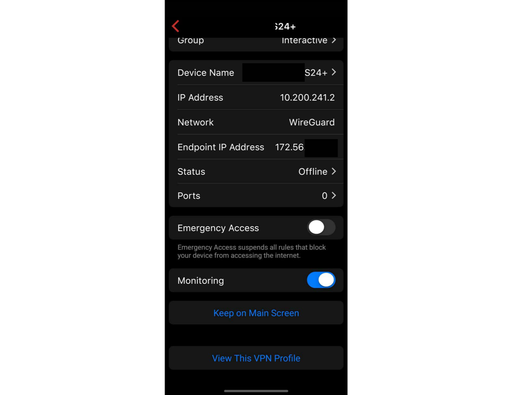 And here are some redacted screenshots removing some device names in the hopes that this helps.