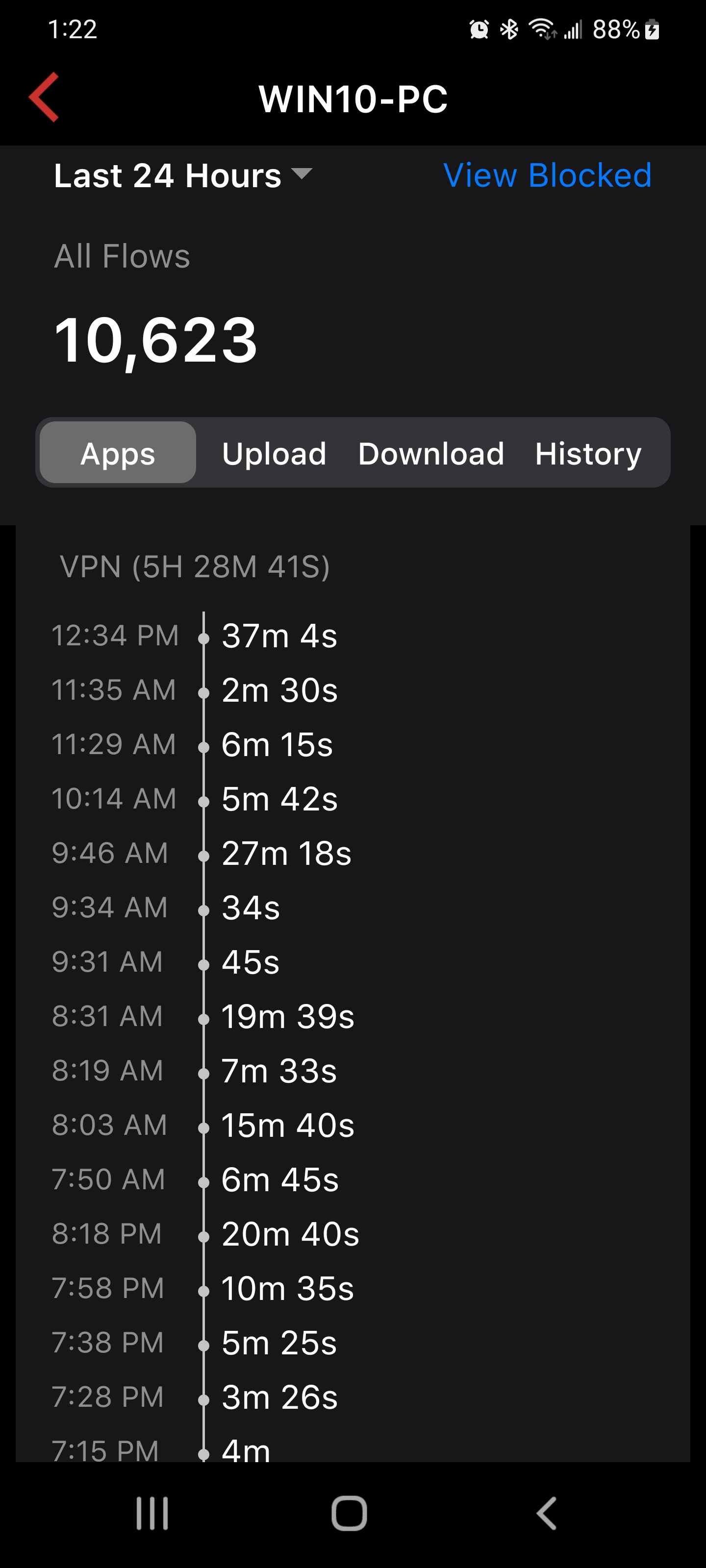 Anyone may know what is this "VPN app" might be? This a screenshot of my desktop PC network flows in the last 24 hrs. Never paid attention to it prior. I tried to correlate time stamps with "History" flow but cannot make anything useful out of it. In some cases - it seems like VPN time stamp starts right when computer is turned ON (and the first entry in "History" flow shows destination as "www.microsoftconnecttest.com") and in other times - computer already was ON for a while and this "VPN app" seems like comes and goes. I tried to correlate time stamp with using Opera browser (which has its own VPN built in), with Team Viewer, etc. but none matches. As of now - just curious...don't want to become paranoid :-)